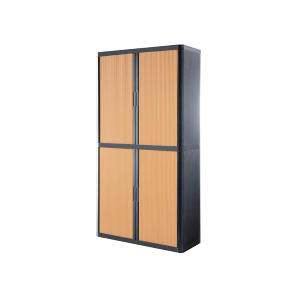 Armoire haute 204x110cm, rideaux h?tre, corps anthracite. 4 tablettes.